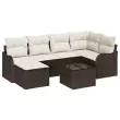 vidaXL Vrtna sedežna garnitura z blazino 7 pcs Rjava Poly ratan