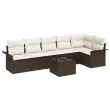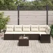 vidaXL Vrtna sedežna garnitura z blazino 7 pcs Rjava Poly ratan