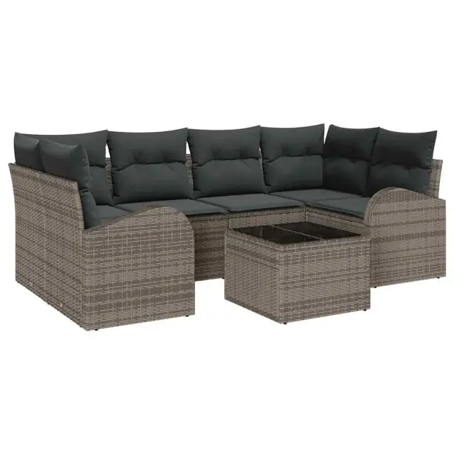vidaXL Vrtna sedežna garnitura z blazino 7 pcs Siva 55 x 55 x 37 cm