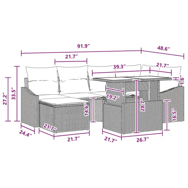 Ta vrtnostni kavč s blazinami ima moderen videz z ukrivljenimi naslonjali in pravokotnimi oblikami, kar je super za sproščanje na terasi ali v vrtu poleti. Narejen je iz poli ratana in prašno lakiranega jekla, kar zagotavlja preprostost in funkcionalnost, lepo pa se prilega vsaki zunanji zasnovi. Popoln za sproščena druženja, ima dovolj prostora in prevleke blazin, ki so enostavne za čiščenje.