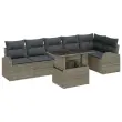 vidaXL Vrtna sedežna garnitura z blazino 7 pcs Siva Poly ratan