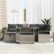 vidaXL Vrtna sedežna garnitura z blazino 7 pcs Siva Poly ratan