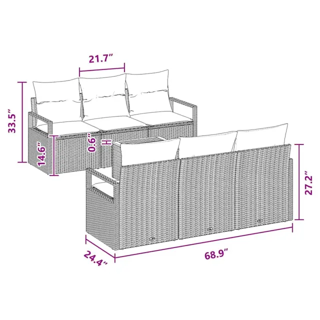 vidaXL Vrtna sedežna garnitura z blazino 7 pcs Siva poli ratan