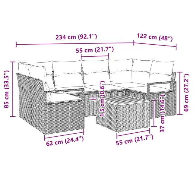 Ta vrtni sedežni set ponuja sodobno in prilagodljivo zasnovo, odlična za vaš zunanji prostor. Odlikujejo ga preproste in funkcionalne linije, kar ga dela vsestransko izbiro za vsak vrt ali teraso. Čiste linije ustvarjajo prijetno vzdušje, idealno za zabave ali uživanje v prostih trenutkih s prijatelji in družino.
