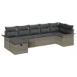 vidaXL Vrtna sedežna garnitura z blazino 7 pcs Siva Poly ratan