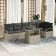 vidaXL Vrtna sedežna garnitura z blazino 7 pcs Svetlo siva Poly ratan