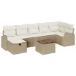 vidaXL Vrtna sedežna garnitura z blazino 8 pcs Bež Poly ratan