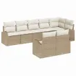 vidaXL Vrtna sedežna garnitura z blazino 8 pcs Bež in bela Poly ratan