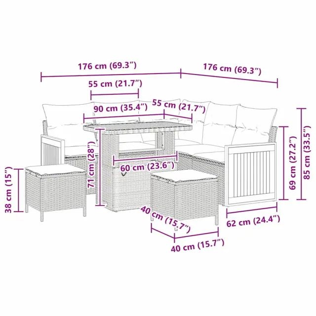 Ta moderni vrtni sedežni set ti prinaša eleganten in funkcionalen dodatek za tvoj zunanji prostor. Preprost in funkcionalen, je oblikovan s čistimi linijami, kar ga dela brezčasnega in primernega tako za sodobne kot tradicionalne vrtove. Njegov stil se prilega različnim priložnostim, od neformalnih srečanj do uradnih večerij.