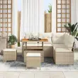 vidaXL Vrtna sedežna garnitura z blazino 8 pcs Bež in smetanova