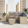 vidaXL Vrtna sedežna garnitura z blazino 8 pcs Bež in svetlo siva