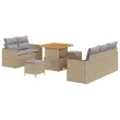 vidaXL Vrtna sedežna garnitura z blazino 8 pcs Bež poli ratan