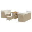 vidaXL Vrtna sedežna garnitura z blazino 8 pcs Bež poli ratan