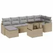 vidaXL Vrtna sedežna garnitura z blazino 8 pcs Bež Poly ratan