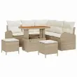 vidaXL Vrtna sedežna garnitura z blazino 8 pcs Bež poli ratan