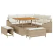 vidaXL Vrtna sedežna garnitura z blazino 8 pcs Bež poli ratan