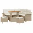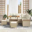 vidaXL Vrtna sedežna garnitura z blazino 8 pcs Bež poli ratan