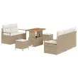 vidaXL Vrtna sedežna garnitura z blazino 8 pcs Bež poli ratan
