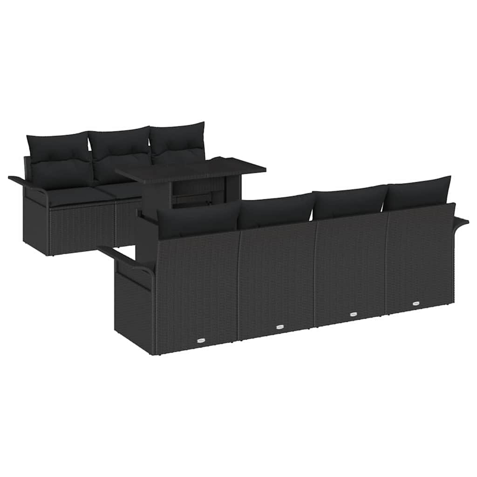 vidaXL Vrtna sedežna garnitura z blazino 8 pcs Črna Poly ratan