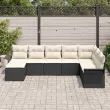 vidaXL Vrtna sedežna garnitura z blazino 8 pcs Črna Poly ratan