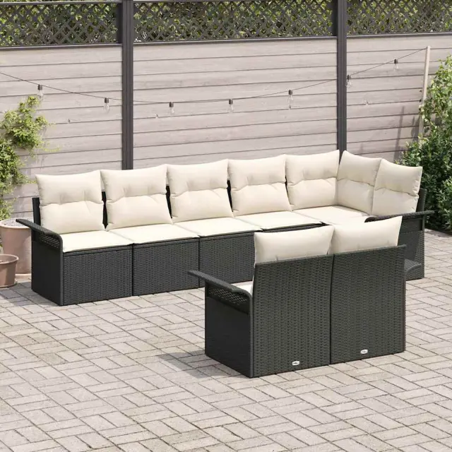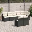 vidaXL Vrtna sedežna garnitura z blazino 8 pcs Črna Poly ratan