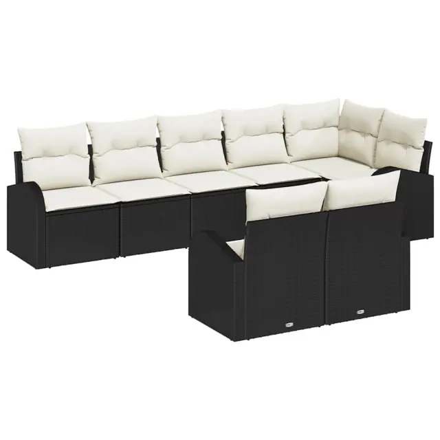 vidaXL Vrtna sedežna garnitura z blazino 8 pcs Črna in bela Poly ratan