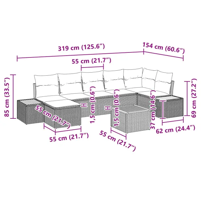 Ta modularni komplet vrtnega kavča doda eleganco vašemu zunanjemu prostoru. Nudi večnamenskost in funkcionalnost s svojim modernim minimalističnim stilom. Idealno za spomladanske in poletne mesece, poli ratan in jekleni okvir zagotavljata lepo in trdno izvedbo. Oblikovanje obogati vsak vrt, teraso ali patio in je super za različne aktivnosti, od sproščanja do druženja.