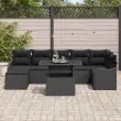 vidaXL Vrtna sedežna garnitura z blazino 8 pcs Črna Poly ratan