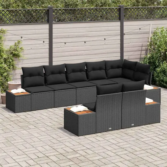 vidaXL Vrtna sedežna garnitura z blazino 8 pcs Črna Poly ratan