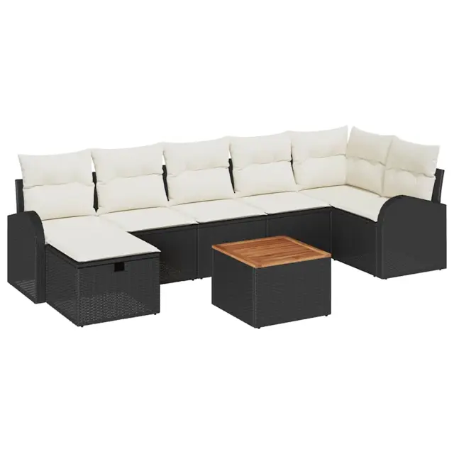 vidaXL Vrtna sedežna garnitura z blazino 8 pcs Črna Poly ratan