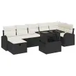 vidaXL Vrtna sedežna garnitura z blazino 8 pcs Črna Poly ratan