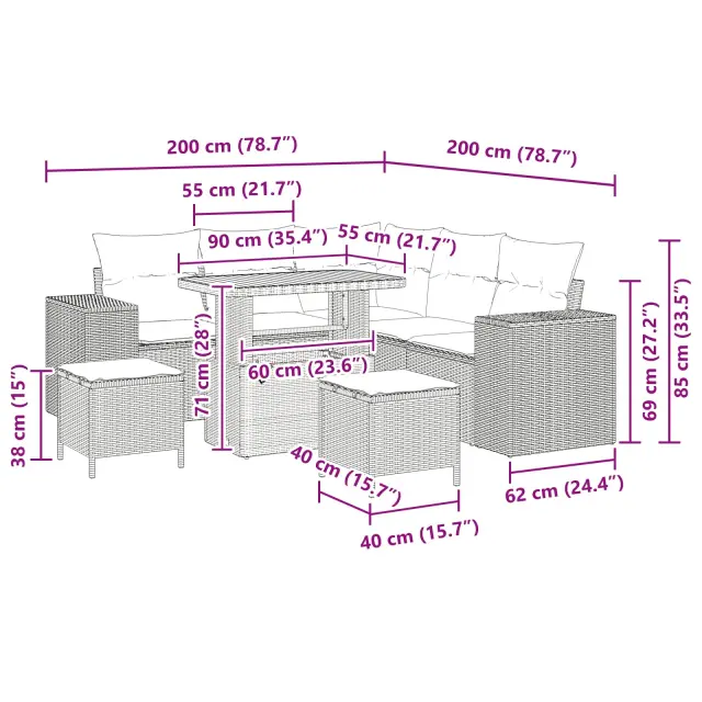 • Zahteve za nego: Ko ga ne uporabljate, pokrijte set, da zaščitite pred vremenskimi vplivi. Enostavna nega bo podaljšala življenjsko dobo in ohranila lep videz skozi čas.