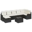 vidaXL Vrtna sedežna garnitura z blazino 8 pcs Črna Poly ratan