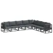 vidaXL Vrtna sedežna garnitura z blazino 8 pcs Črna Aluminij