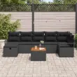 Ta moderni zunanji vrtni kavč je idealen dodatek za vsak vrt ali dvorišče, saj pusti sodoben pečat s svojimi čistimi linijami in funkcionalno zasnovo. Predstavljajte si uživanje v pomladnih in poletnih dneh na svoji terasi, kjer ta set ponuja stil in udobje za druženje ali mirne trenutke. Set sestavljajo različni kosi, kot so vrtnarska miza, centralni sedeži, kotni sedež, arm kavči in footstool – vse narejeno iz kombinacije poli ratana, trdnega akacijevega lesa in prašno lakiranega jekla, ki se lepo usklajujejo, da prenesejo zunanje pogoje.