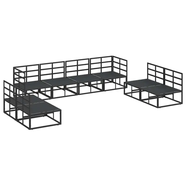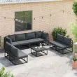 vidaXL Vrtna sedežna garnitura z blazino 8 pcs Črna Aluminij