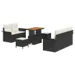 vidaXL Vrtna sedežna garnitura z blazino 8 pcs Črna poli ratan