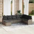 vidaXL Vrtna sedežna garnitura z blazino 8 pcs Siva Poly ratan