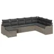 vidaXL Vrtna sedežna garnitura z blazino 8 pcs Siva Poly ratan