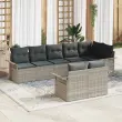 vidaXL Vrtna sedežna garnitura z blazino 8 pcs Svetlo siva Poly ratan