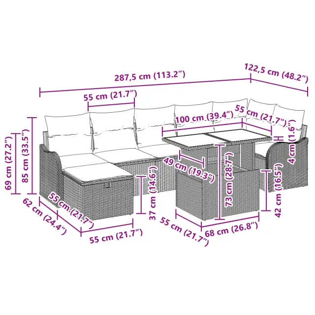 Ta modularni set vrtnem kavču je super dodatek za vsak zunanj prostor, ki ponuja moderen videz in praktičnost. Njegov eleganten design je preprost in minimalističen, kar ga dela idealnega za sodobne prostore. Naj gre za intimna srečanja ali sproščujoče trenutke, ta set dvigne vsak vrt ali teraso s stilom in udobjem.