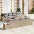 vidaXL Vrtna sedežna garnitura z blazino 9 pcs Bež Poly ratan