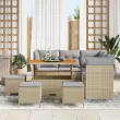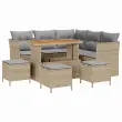 vidaXL Vrtna sedežna garnitura z blazino 9 pcs bež in svetlo siva