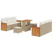Ta moderna vrtnarska garnitura popestri vsak zunanj prostor. Združuje lepo zasnovo s funkcionalnostjo. Idealna za spomladanske in poletne zabave, njena čar vam bo prirasel k srcu. Čisti, sodobni vibe se lepo zlije z vašim vrtom ali teraso. Akacijev les in poli ratan pa ustvarjata udobno in prijetno celoto, ki ostaja stilsko neopazna.