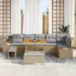 vidaXL Vrtna sedežna garnitura z blazino 9 pcs Bež Poly ratan