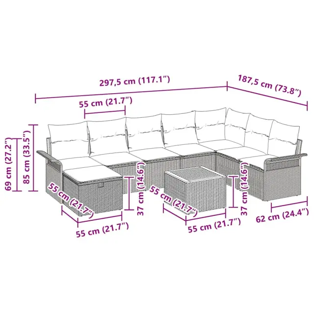 Ta moderni zunanji set kavčov za vrt je prilagodljiv in eleganten, idealen za vse vaše zunanje prostore. Funkcionalen dizajn omogoča udobno sedenje, saj je odličen za večje druženje ali manjše preživljanje prostega časa. Njegov prefinjen stil, ki odraža sodobno estetiko, prinaša prijetno vzdušje na vrt ali teraso. Ne glede na to, ali imate zabavo ali si želite le uživati v mirnem zunanjem kotičku, ta set je odličen za izboljšanje vaše izkušnje na prostem, saj združuje estetski užitek in praktičnost.