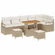 vidaXL Vrtna sedežna garnitura z blazino 9 pcs Bež Poly ratan