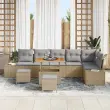 vidaXL Vrtna sedežna garnitura z blazino 9 pcs Bež poli ratan