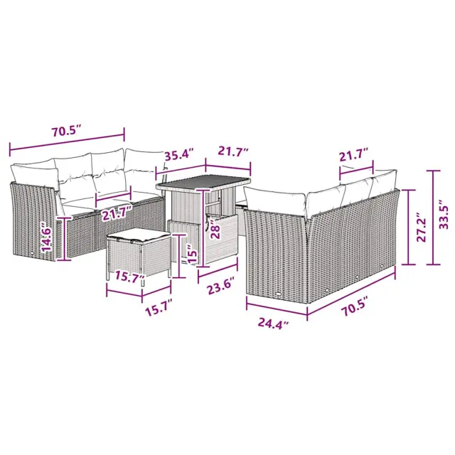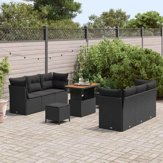 vidaXL Vrtna sedežna garnitura z blazino 9 pcs Črna 90 x 55 x 71 cm
