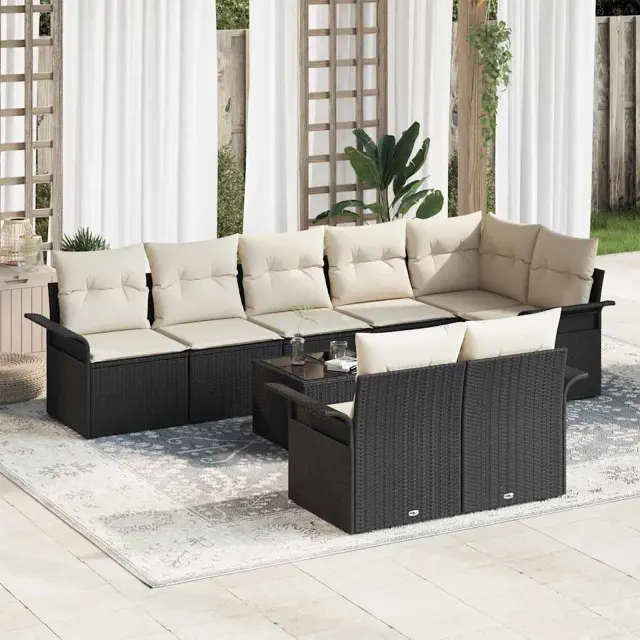vidaXL Vrtna sedežna garnitura z blazino 9 pcs Črna Poly ratan